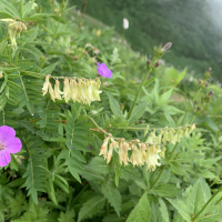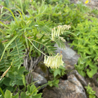 イワオウギは、日本固有の多年生草本植物で、主に山地の岩場に生息します。高さは約10~30cm程度で、茎は直立または斜めに立つことが多いです。葉は羽状複葉で、3~7枚の小葉を持ち、楕円形で縁がのっぺりとしています。花は夏に咲き、黄色の蝶形花を持つことで知られています。