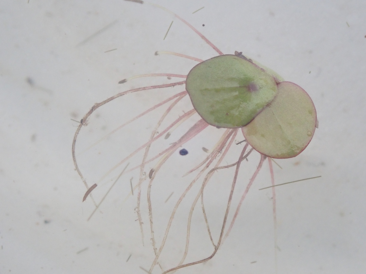 淡水域の水面に生育する。直径 3–10 mm ほどの葉状体から、多数の根が水中に伸びている。