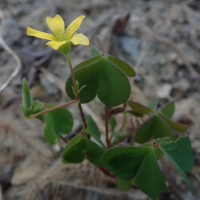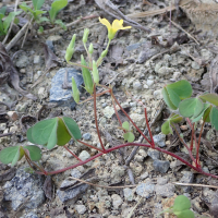 葉は夕方になると閉じ、片側が欠けて食べられたように見えることから、片食み(カタバミ)と呼ばれるようになった。