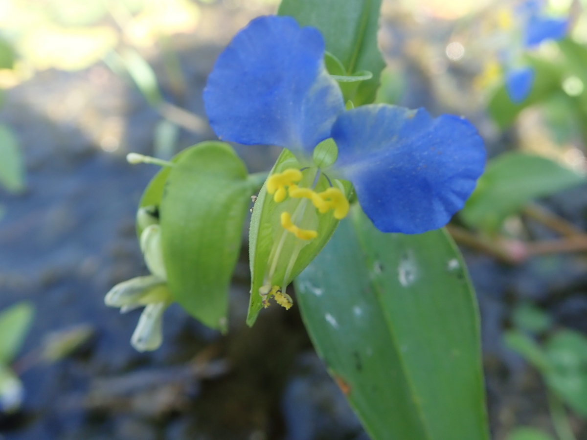 ハナバチやハナアブなどの昆虫が花粉を運びぶが、うまく花粉を運んでもらえないときに備えて、花が閉じるときに下2本の雄しべと雌しべをくるっと巻き込んで自家受粉できるようになっている。ツユクサの花には蜜腺がなく、咲いている時間も短いので、ほとんど自家受粉に頼っていると思われる。