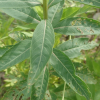 北アメリカ原産の越年草で、高さは0.3~1.5mになり、河川敷、荒地、道端などに生えている。