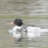- カワアイサとは似ているが、ウミアイサは全体的に体が小さめで、頭の形や模様が異なる。