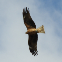 トビは全体に茶褐色で、尾は特徴的な「凧尾型」であるが、飛行中には広げた翼が目立つ。若鳥は成鳥よりも斑点が多く見られる。