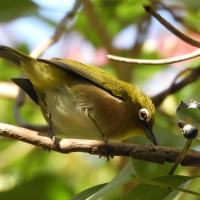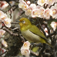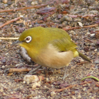 - ウグイスと形態が類似するが、ウグイスはメジロに比べてくすんだ茶色で目の周りの白い輪がない。