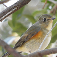 - 類似種としてジョウビタキがあるが、ジョウビタキはより鮮やかな橙色の腹部と白い大きな斑点が翼にある
