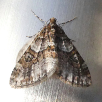 翅は灰白色の地色に、数本の線や帯による繊細な模様がある。模様の色には個体差がある。