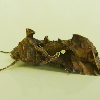 小さな枯葉のように見える蛾。 キンウワバ亜科には本種とよく似た種があり、同定を間違いやすい。特にイチジクキンウワバよく似る。
