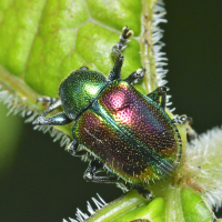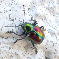 上翅は赤色で緑色の縁取りがあり、その他の部分は緑色。