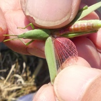 ・体の色は、オンブバッタと同様に緑色のものと薄茶色のものがいる。