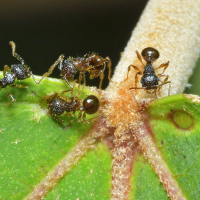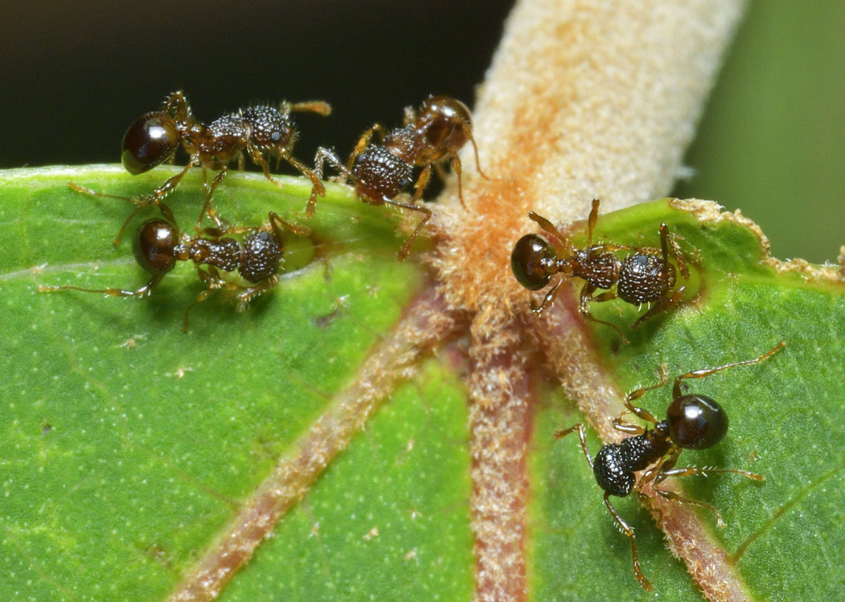 アカメガシワの葉にある蜜腺に群がっていたものを撮影