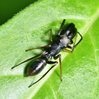 アリにそっくりのハエトリグモ。オスは大きな上顎をもつ。