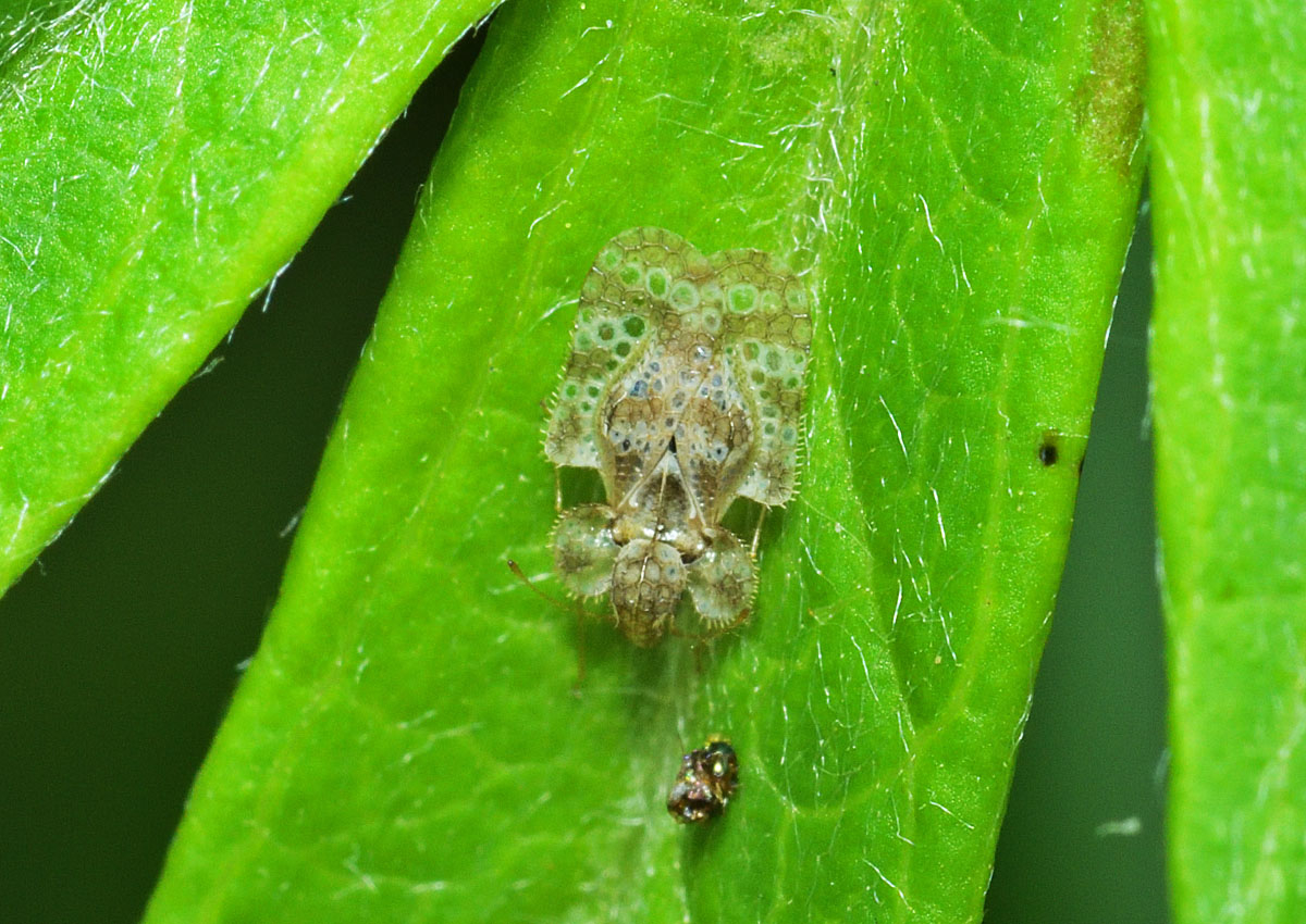 翅が半透明で褐色の斑模様があるグンバイムシの仲間。