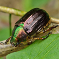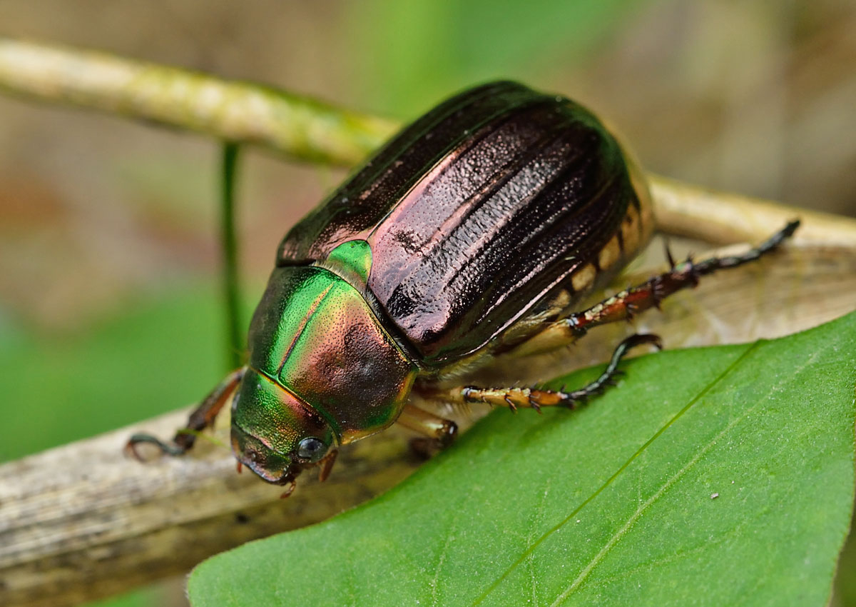 針葉樹に集まるコガネムシの一種。 光沢が強く、頭部から前胸部は緑色。 上翅は赤紫色だが、綱褐色から黒色までの変異がある。 前胸背板中央に縦長に凹みがある。