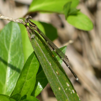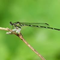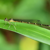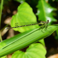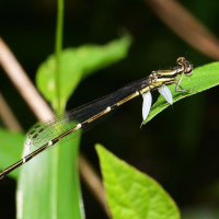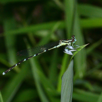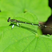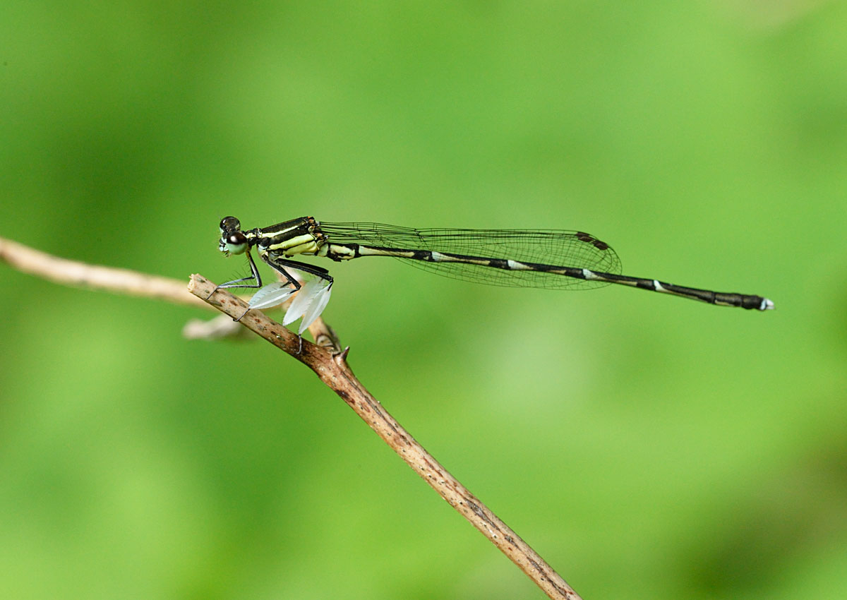 トンボ目 モノサシトンボ科 モノサシトンボ亜科性別:オス撮影地:宝塚市西谷地区オスの第2・3肢が平たくなっており、これを軍配に見立てて名付けられました。絶滅危惧種で、環境省のカテゴリーで準絶滅危惧種、兵庫県では絶滅危惧Ⅱ類に指定されています。