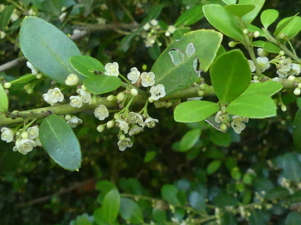 ツゲ(ツゲ目ツゲ科)と葉の感じがよく似ているが、ツゲは葉が対生につくのに対し、イヌツゲは互生につくことで見分けることができる。