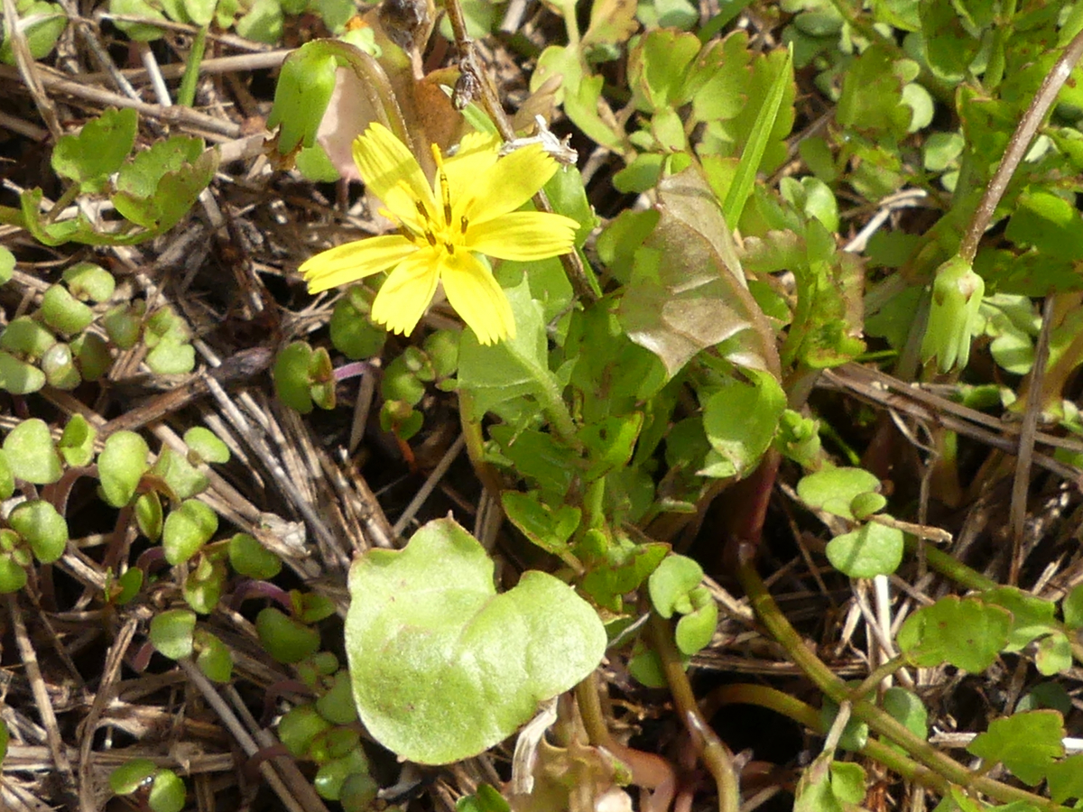 春になると葉の間から数本の茎を斜めに出して、伸びた茎先に黄色の頭状花をつける。頭状花は8~13枚の舌状花からなり直径は約1cm、日が当たると開き、夕方や曇りの日は閉じてしまう。