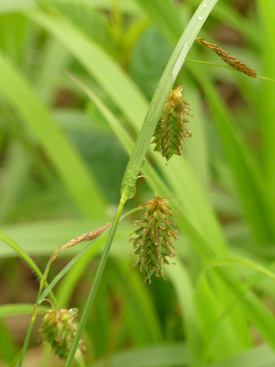 カヤツリグサ科スゲ属の多年草。 池沼の縁や田んぼの畦などに生える。 葉は細長い。 花茎に小穂が1~5個つく。 花茎の頂部につく細い小穂は雄性、下部の太い小穂は雌性。