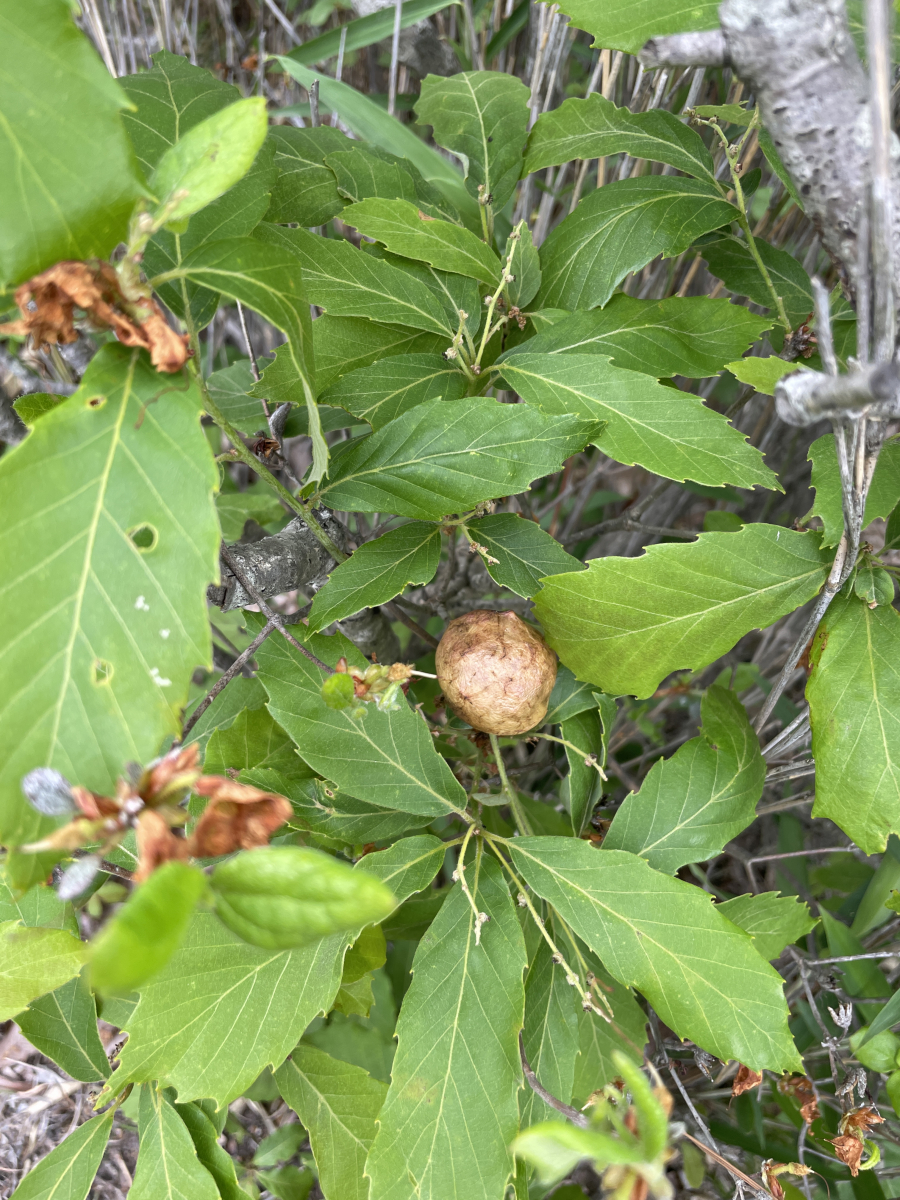 赤い実のようなものは、クリタマバチの虫こぶです。