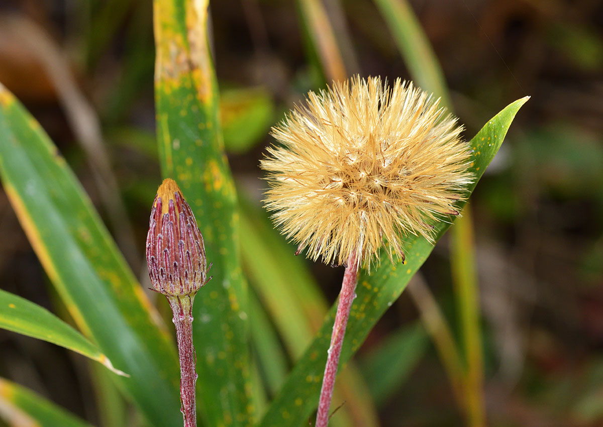秋型の閉鎖花(左と)痩果の冠毛(右) 撮影地:宝塚市西谷地区