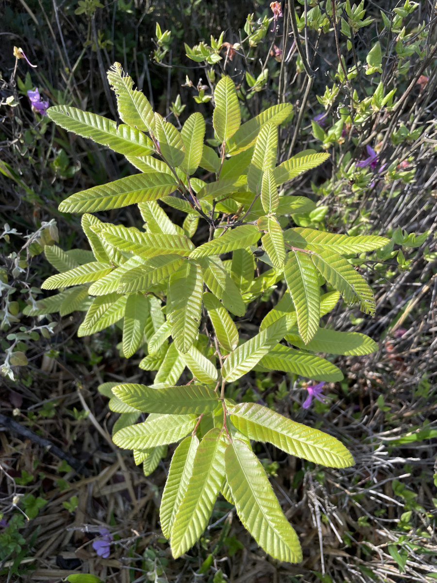 葉の縁に針状のきょ歯があり、針の先端は緑色が抜けて茶色となる
