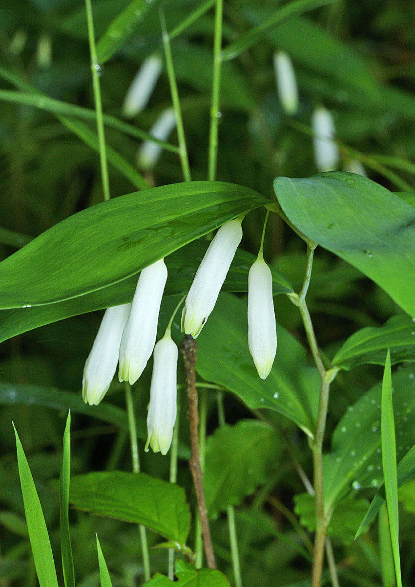 茎は角張る。近縁のナルコユリの茎は円柱形。