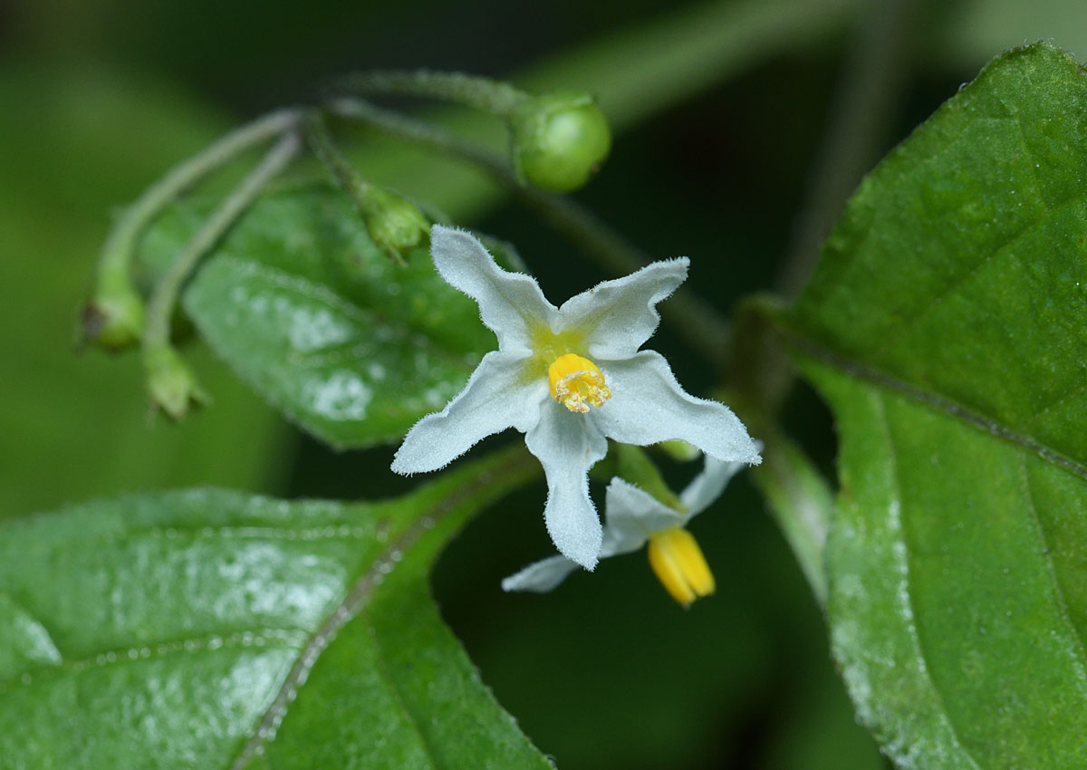 花は1つの房に総状に4~12個が並ぶようにずれてつく。花冠は星形に平開し幅10~12mm程度、白色~淡紫色で、5裂する。