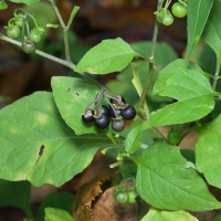 果実は直径8mm前後、未熟な緑色のときにも光沢がほとんどなく、熟して黒くなっても光沢はない。ただし、かなり光沢のある果実が混じるときもある。果実の果肉の中に球状の顆粒がない。