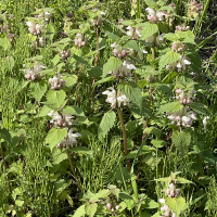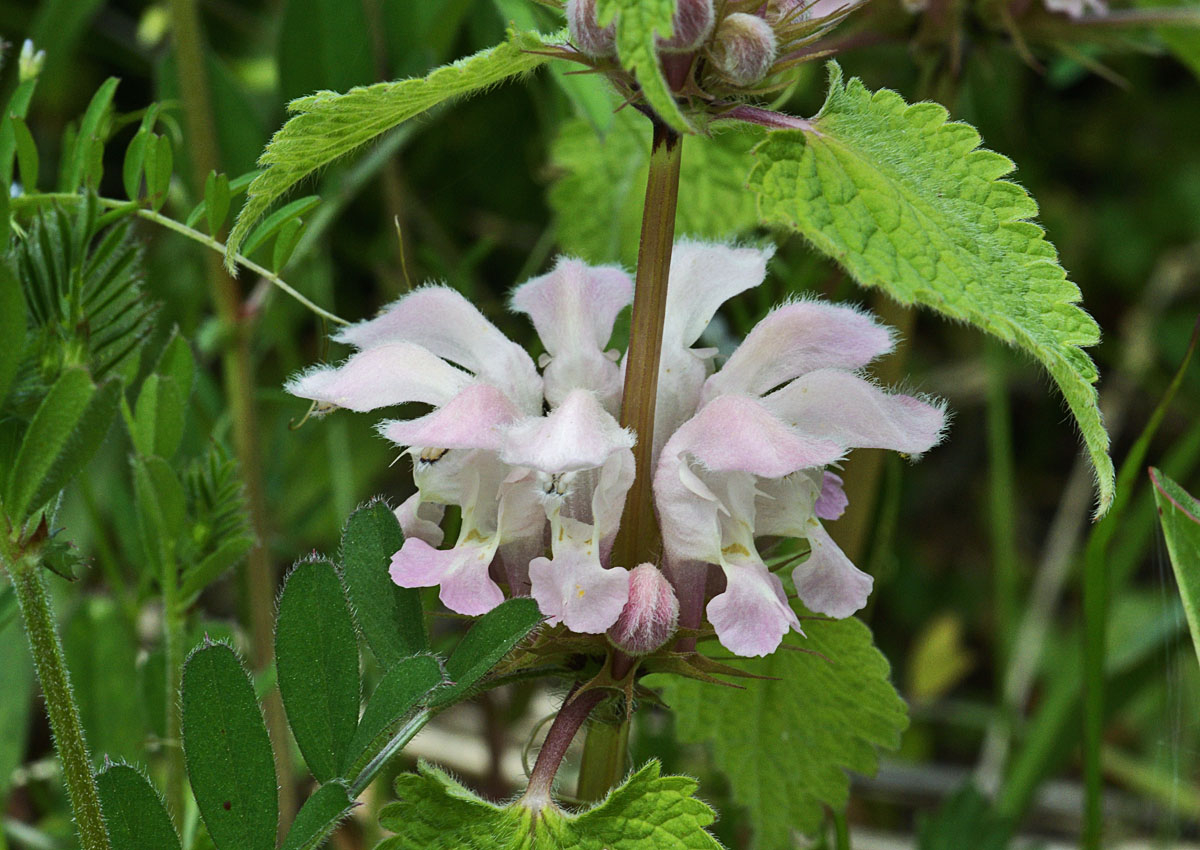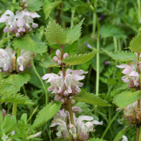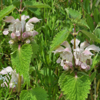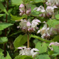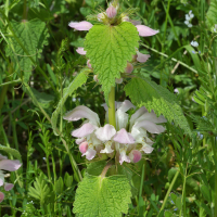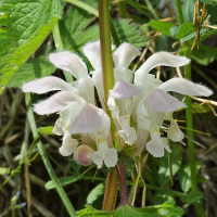 シソ科オドリコソウ属の多年草。 草丈は30~50cm。 花はシソ科特有の唇形で、シソ科としては大きい。 10個前後の花が茎を囲むように輪になって咲く。