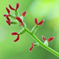 雌花は新枝の先に花穂が直立して10個ほど咲く。