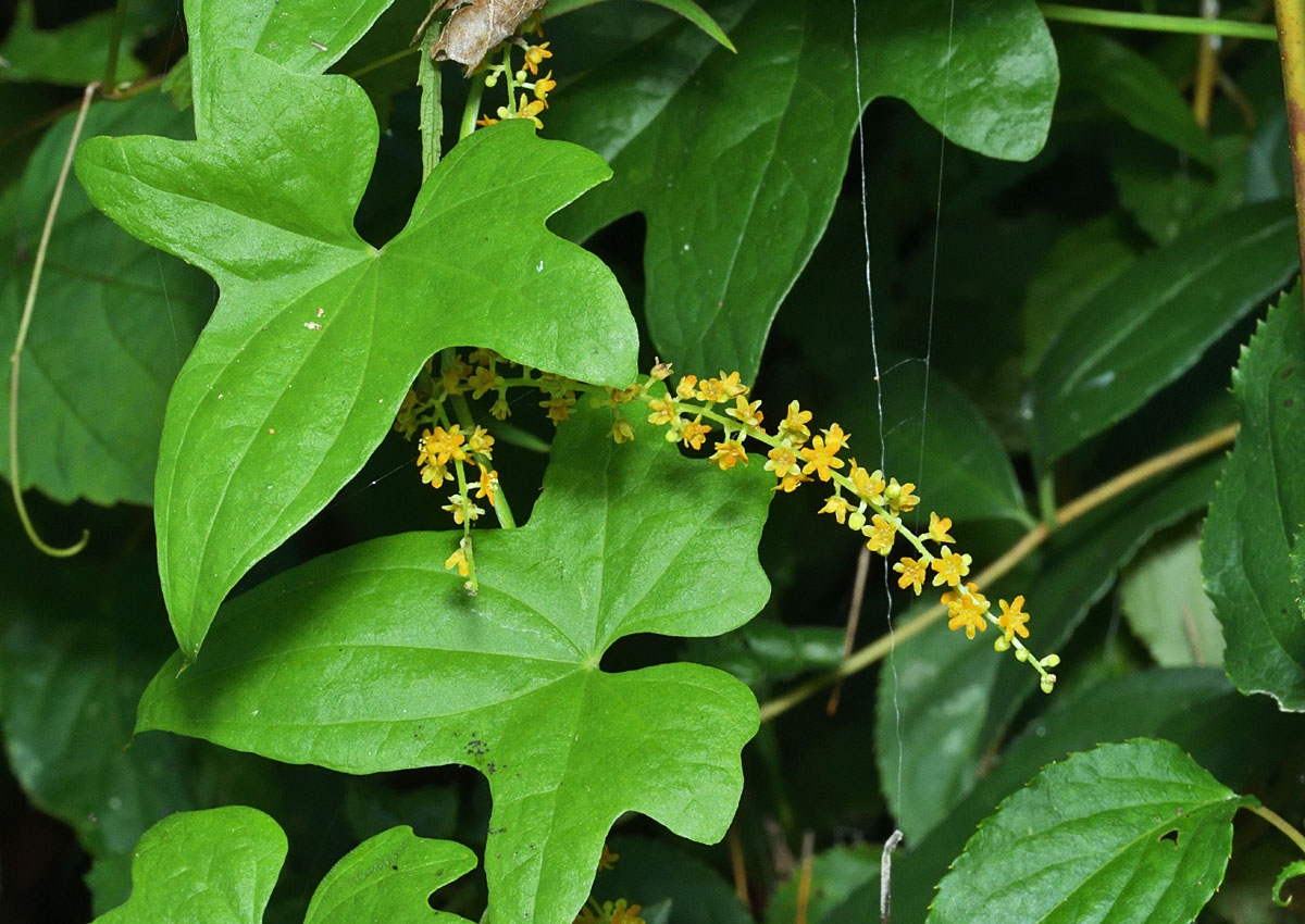 葉が5~7分裂し、カエデの葉のようになる。 雌雄異株
