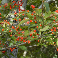 山地に普通に生える。 樹皮は灰色で、縦にしわが入る。
