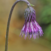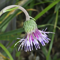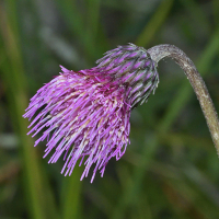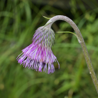 湿原や湿地に生育するアザミ属の多年草。 長い花茎を伸ばし、先に頭花を1つ付ける。 頭花は、開花前は下向きだが、開花すると次第に上向きになっていき、花が終わる頃には真上を向く。