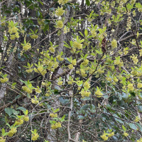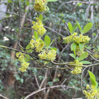 落葉の低木で、雌雄異株。 山地に生え、高さは2~6mになる。 葉は互生だが、枝先に集まる。 葉・樹皮・木部とも強い揮発性の芳香を持つ。 枝は、和菓子に添える楊枝の材料。