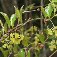 トゲと巻きひげで他の植物などに絡みつく。