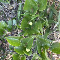 葉はつやのある円形、広卵形あるいは広楕円形で、3~5本のくっきりとした葉脈が平行に走る。