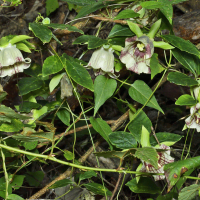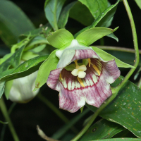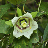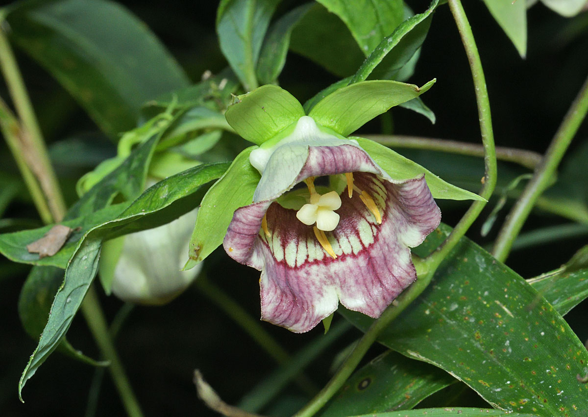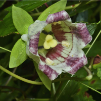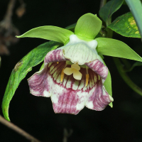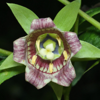 花の色 : 外側は白色、内側は白色地に赤紫色の斑模様