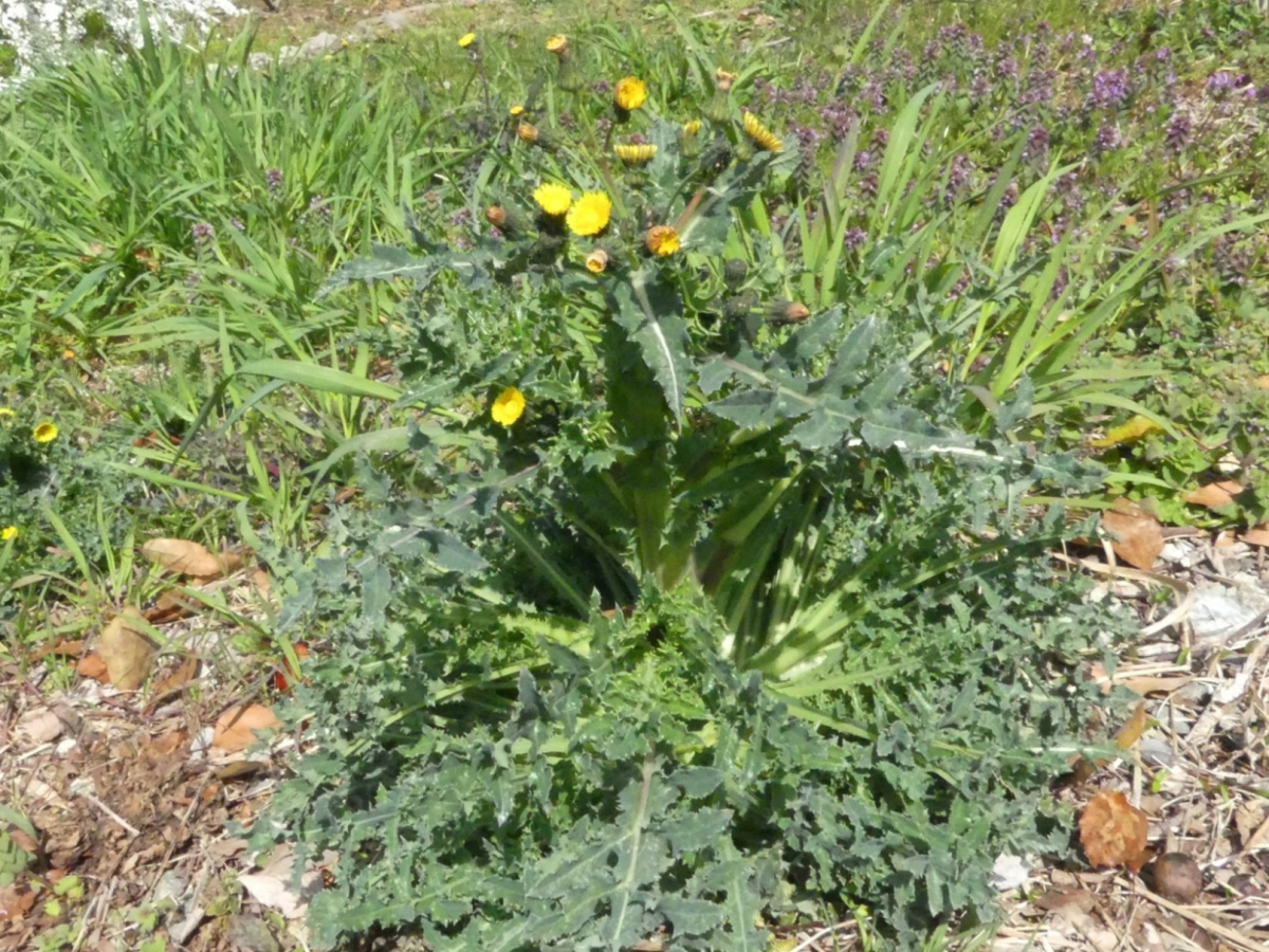 ノゲシとオニノゲシの雑種とされています。葉にトゲがありますが、手で触ってもオニノゲシのように痛くありません。「花と緑のまちづくりセンター」南にあるトイレの北側に生えていました。