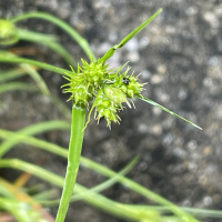 は、細長めの小型のスゲで、小穂は花茎の先端に集まるが、下の方に離れてつくものが出る。果胞と果実の中ほどがくびれるというのが特徴。また、乾燥させると黒っぽくなる。