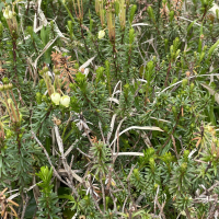 アオノツガザクラはツツジ科の多年草で、主に高山帯に分布します。草丈は5〜10cm程度で、低木状に成長します。葉は緑色で、先が尖った針状をしており、密集して付きます。花は小さく、釣鐘型で白色をしており、夏に咲きます。