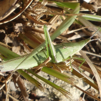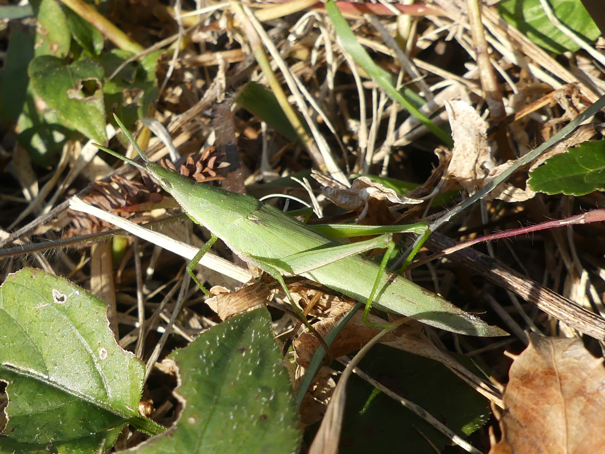 ・体の色は、オンブバッタと同様に緑色のものと薄茶色のものがいる。