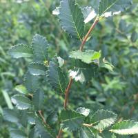 落葉の高木で高さは13~15m、幹の直径60cmになり、山地の谷の斜面下部、川岸、荒れ地によく生えている。