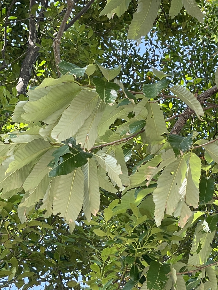 同じ仲間のクヌギと大変よく似ているが、アベマキは葉の裏が白い星状毛に覆われているのに対し、クヌギの葉の裏は星状毛がなく淡緑色をしているので見分けることができる。