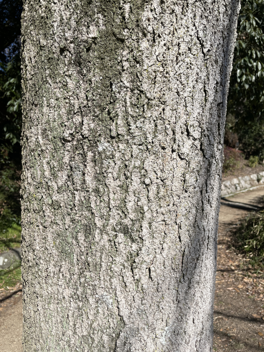 - 樹皮は黒褐色で老木では剥がれ落ち、波状の模様となる。