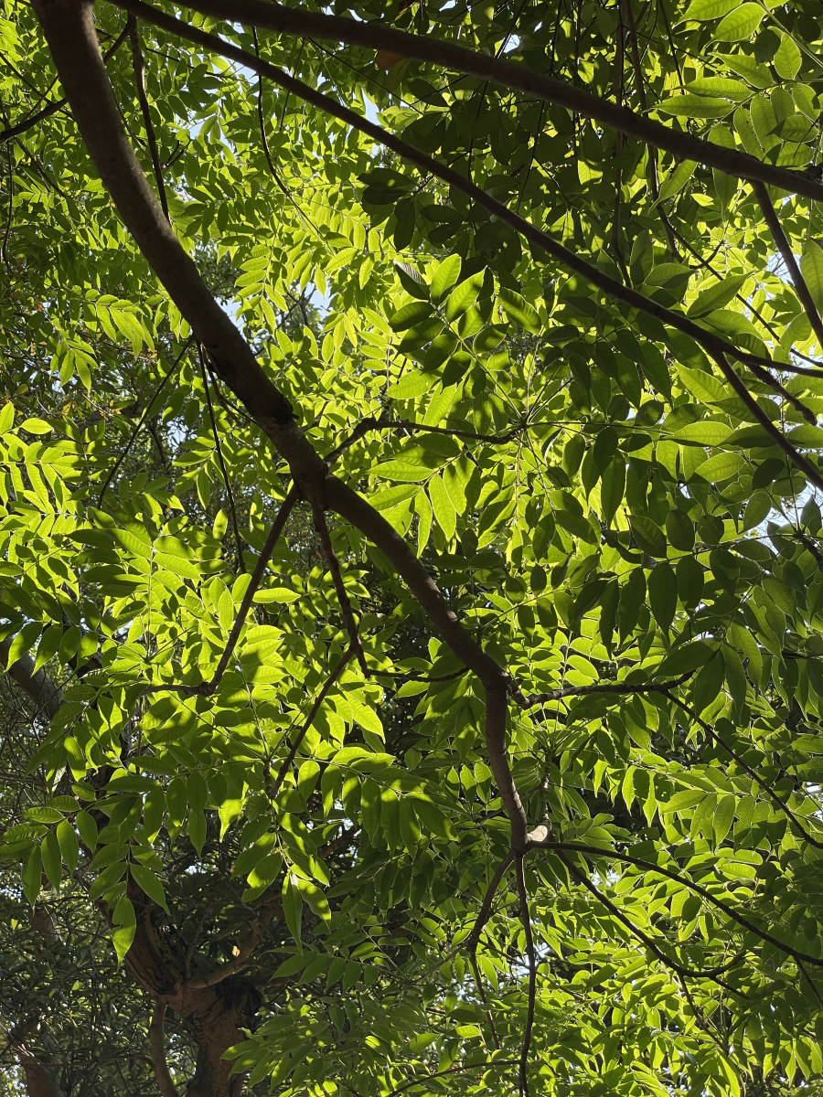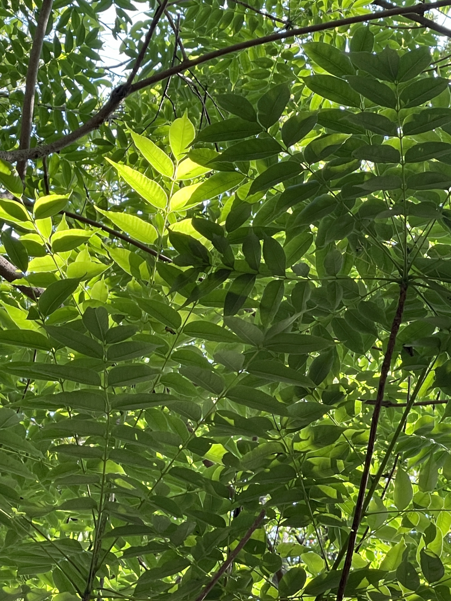 葉は4~8対の小葉と先端の1枚で複葉をつくり、ヤマハゼと違って複葉の軸や小葉、花序の軸は無毛で、小葉の裏は白っぽい色をしているので見分けることができる。