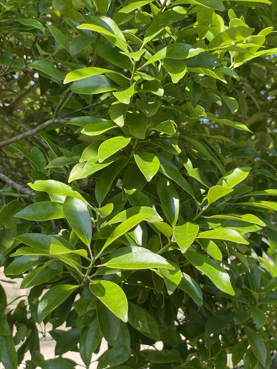常緑の高木で、高さは10mほどになるが、30mくらいになるものもある。海岸に近い山地の常緑樹林に多く生える。
