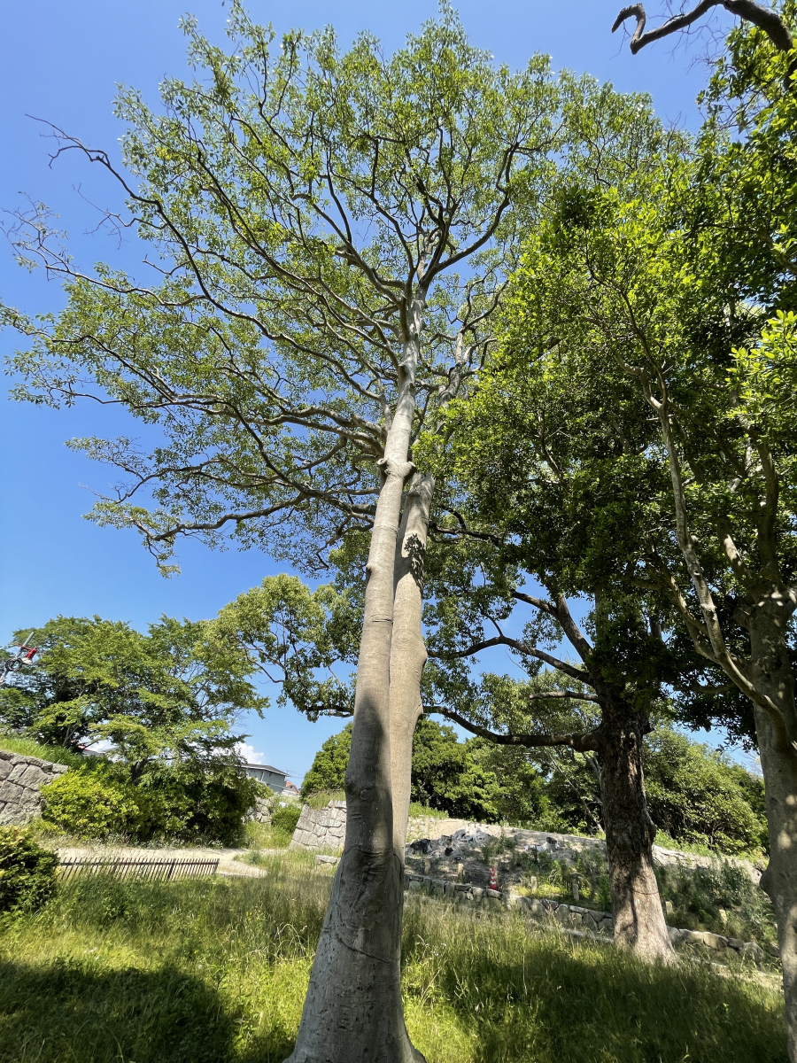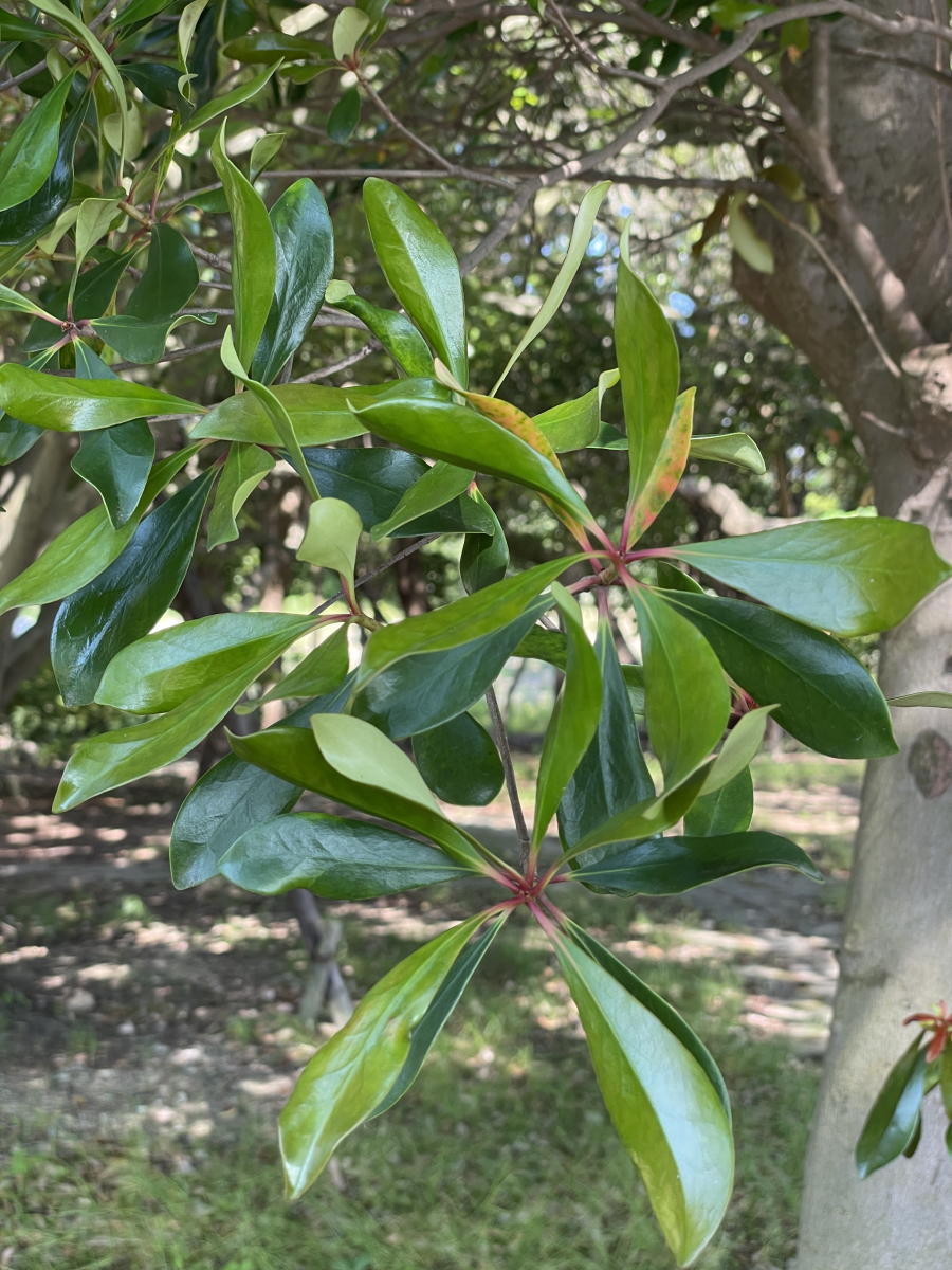 常緑の高木で高さは10~15m、幹の直径は80cmになり、暖地の海岸近くに生える。