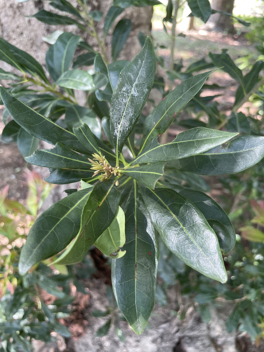 常緑の高木で高さ5~10m、大きなものでは20mになり、照葉樹林に多く生えるが、海岸や低山の乾燥した尾根などの森林にも生える。