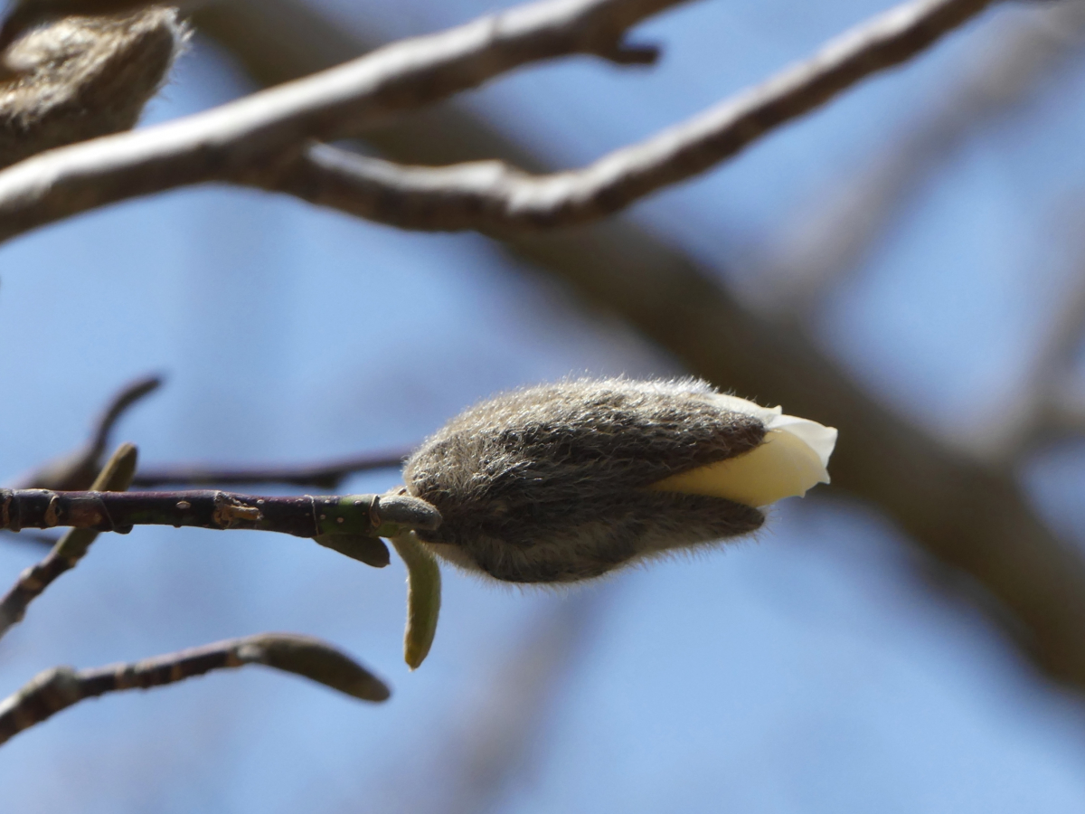 においの花園に植えられたコブシがもうすぐ咲きそうです。