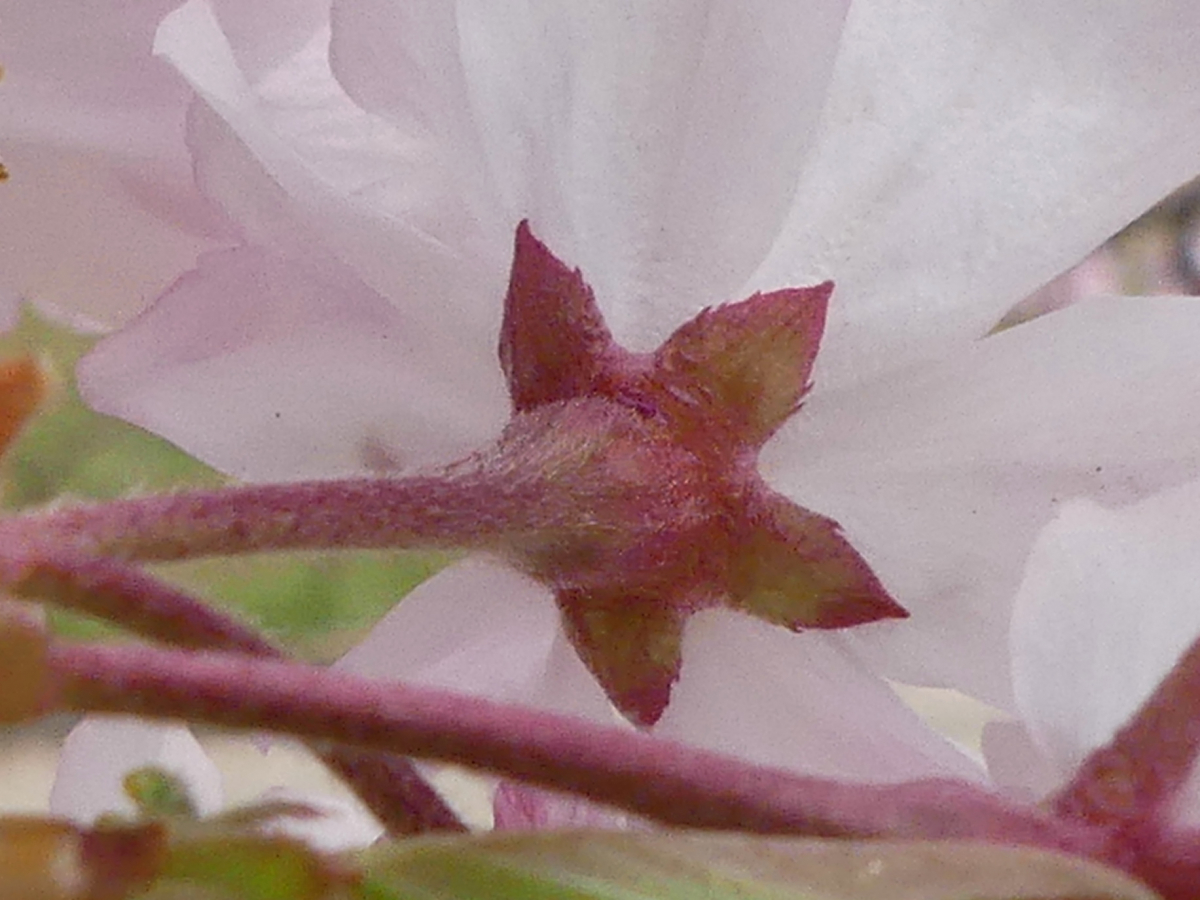 ガク片は三角形で、縁に数個の鋸歯があります。