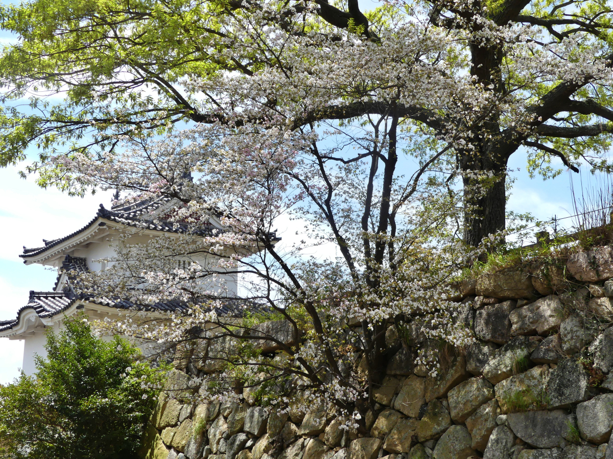 天守台の東側石垣の側面に生えている